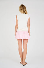 Suloinen vaaleanpunainen puolihame, jossa tremdikäs pallo-alaosa. Kiva vaihtoehto shortseille. Hameessa on vuori, ja vetoketju sivussa.