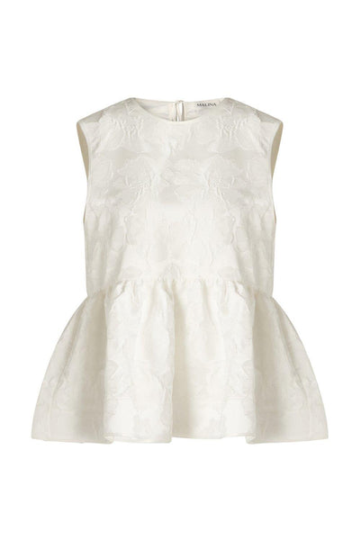 Kirkkaan valkoinen Gianna pusero on ihanan raikas ja siinä on trendikäs runsas peplum-helma.