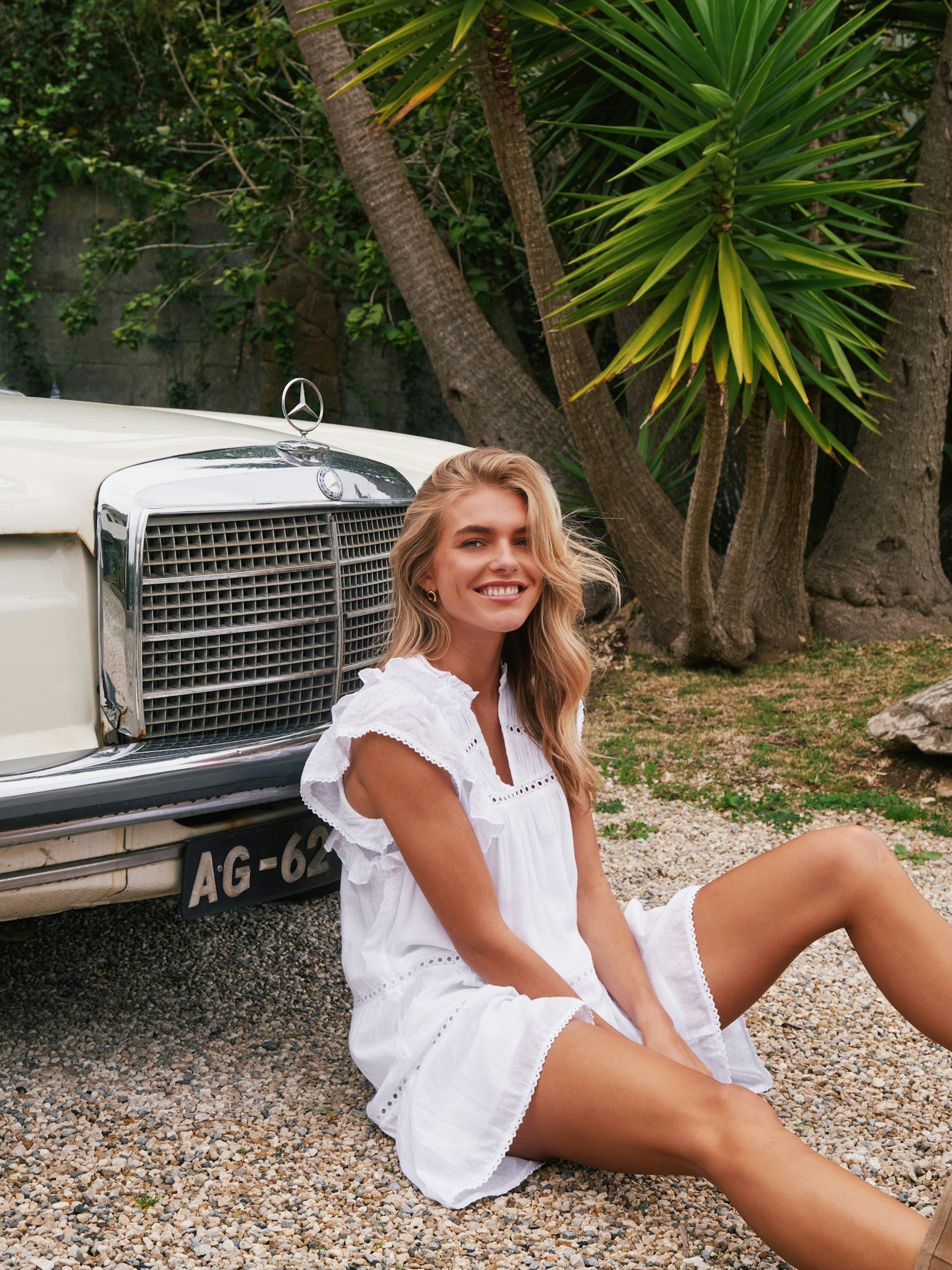 Neo Noirin raikas valkoinen mekko kauniilla yksityiskohdilla.