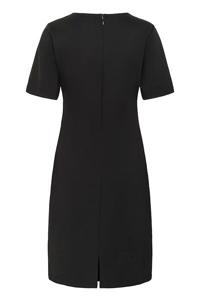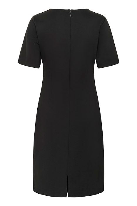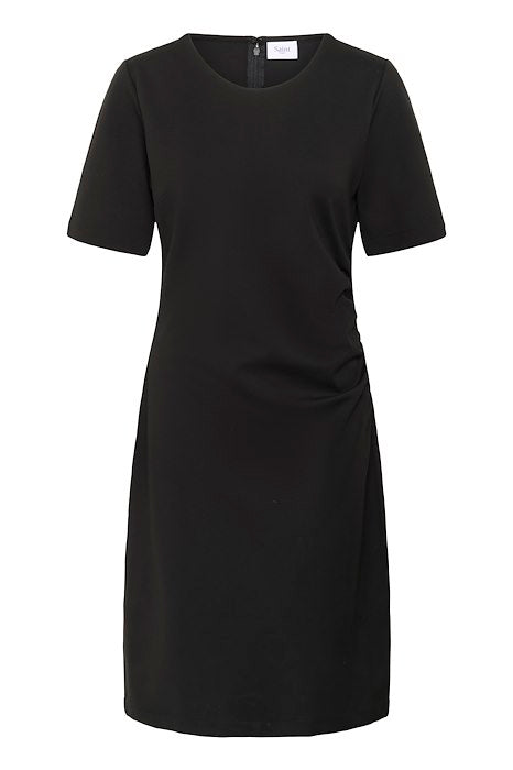 Kaunis tyköistuva klassinen pikkumusta, moneen menoon. Mekossa on takana vetoketju, pieni rypytys vyötäröllä.